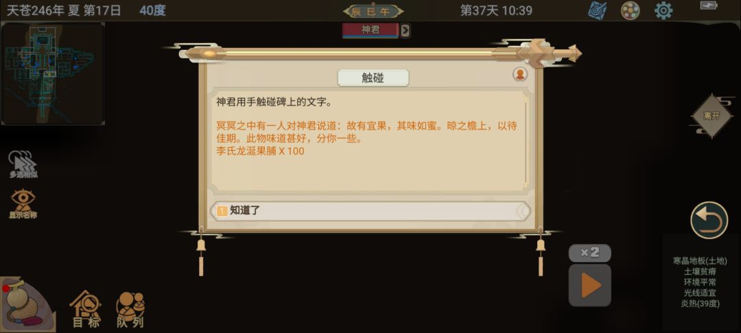 隐藏点五:按顺序《以待佳期》触摸石碑,掉落“果脯x100”。