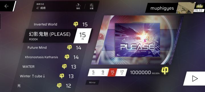 其实玩音游尤其是像phigros这样高难度有多指的音游,用拇指玩的前景并不是太好,撑死rks只能到16.2左右,可能还没有