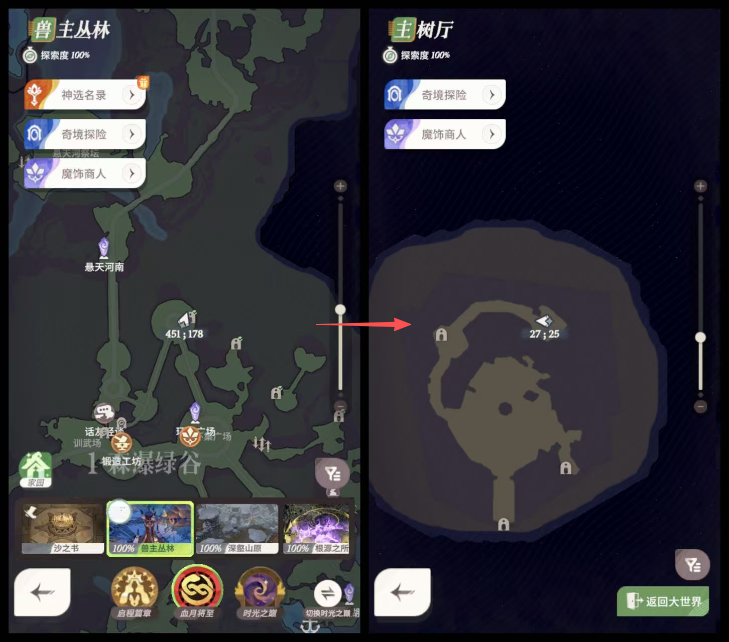 41、2025.12.4版本更新后至森瀑绿谷(451;178)-主树厅(28;26),可触发回忆,剧情过完可获得迷你少女加拉头饰,50钻,2仓鼠