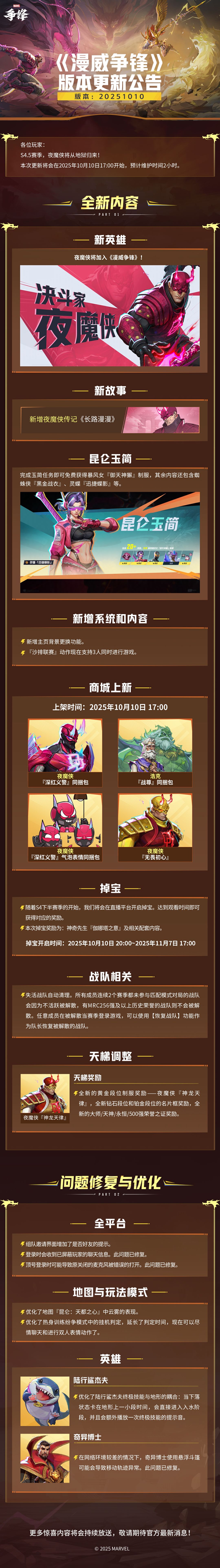 《漫威争锋》20251010版本更新公告 ——S4.5赛季