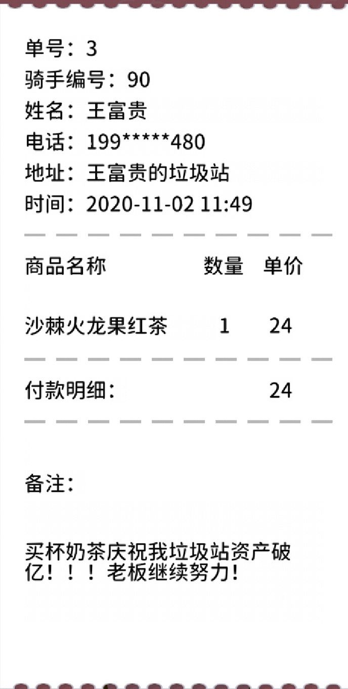 今天的奶茶是送到王富贵的垃圾站的,希望老板早日资产破亿!