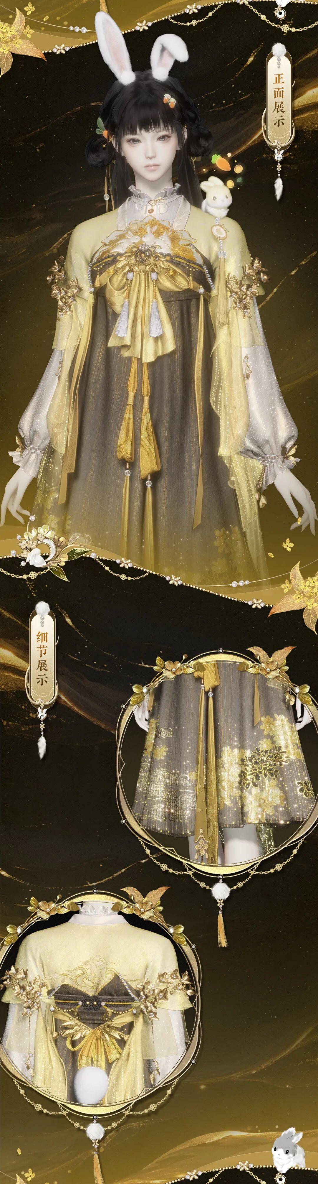 桂子月中落,天香云外飘。十月既是中秋之月,也是桂花盛开之时。此衣正是取意自桂花飘香时的月宫灵兔。