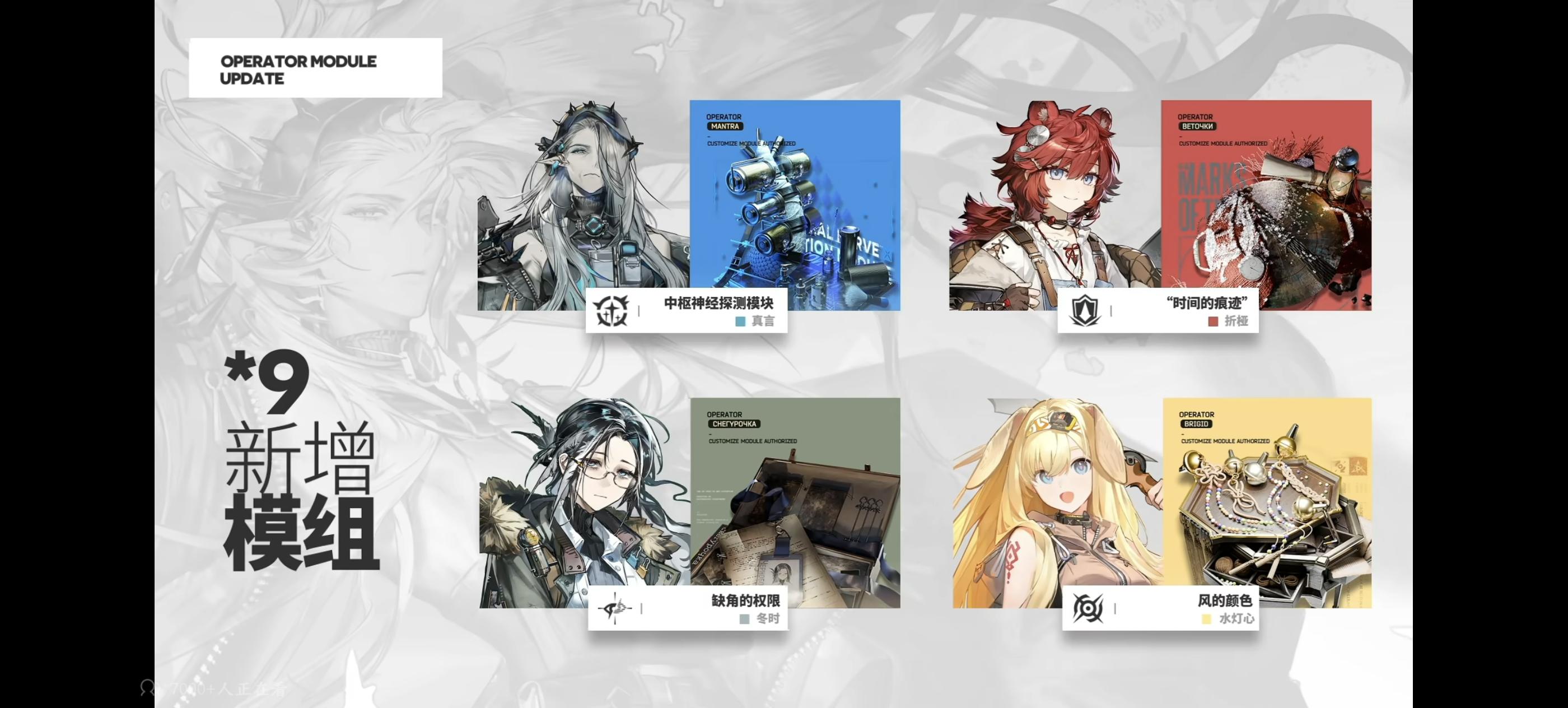 ④新模组9个,真言折亚冬时水灯芯,亚人图娜跃跃以旧换新送葬人和羊,电弧也有一个
