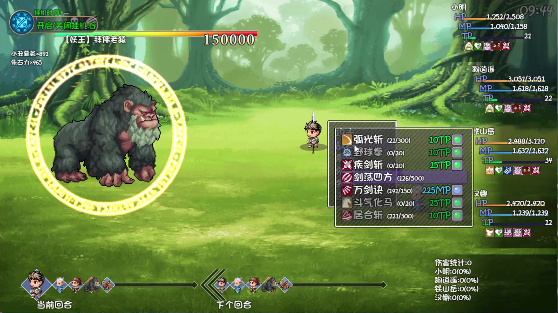剑荡四方:400+物理伤害×0.5,随机攻击4次,门派套装,心法加成100%