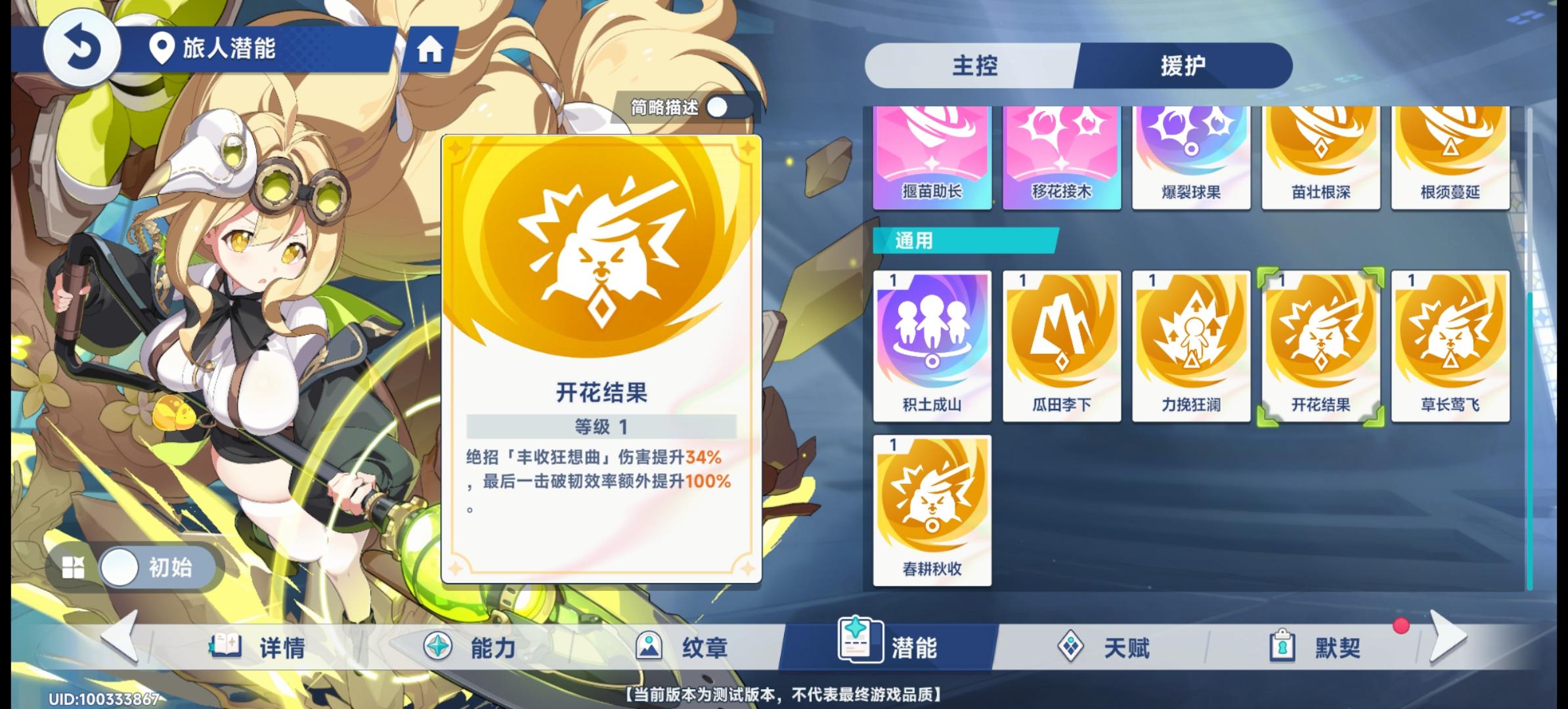 水:本期测试没练,但是苍兰的机制很适合打大型boss,同时水系有一定的生存能力