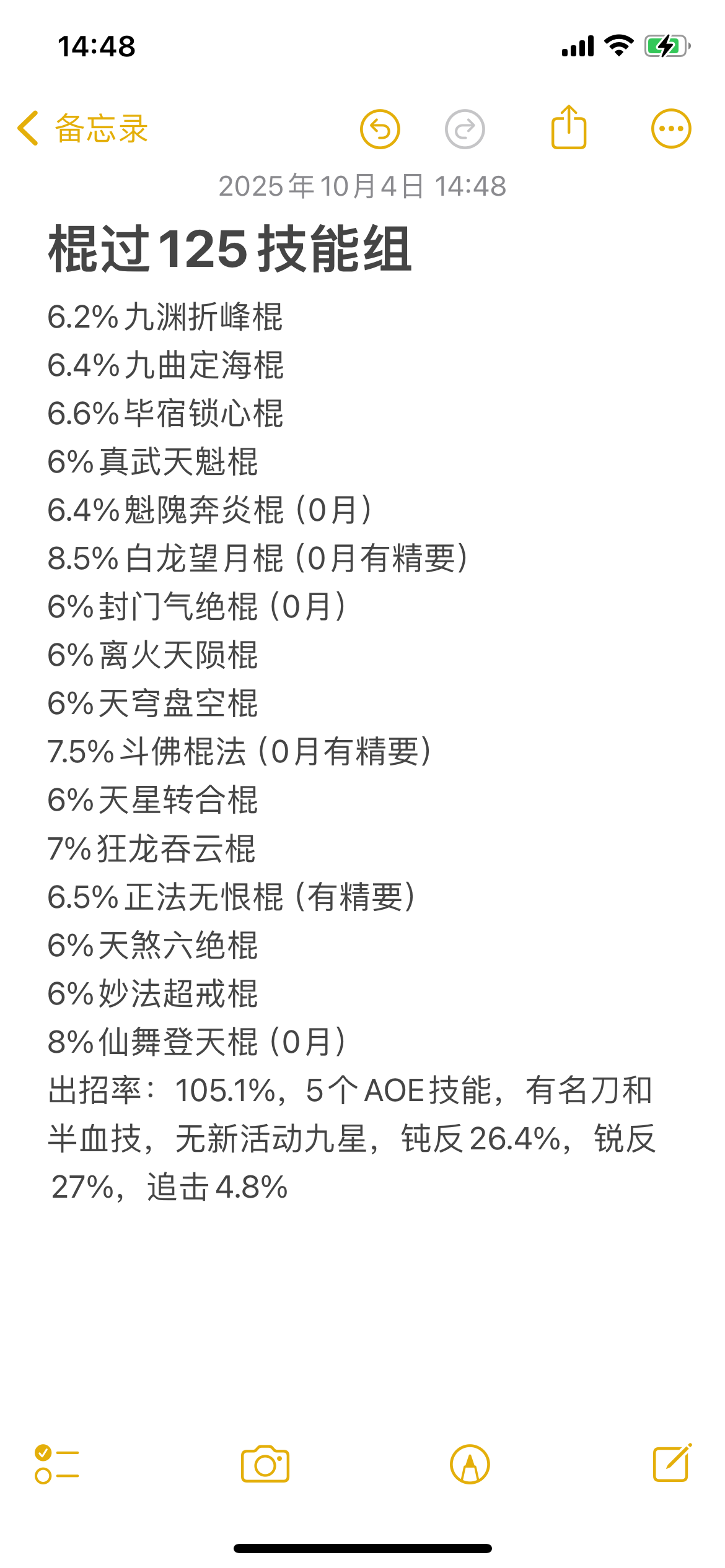 总结:10.2大号不动枪一个半月过百花,10.3大号不动枪天星阁登顶,10.4小号天罡棍一个月过125