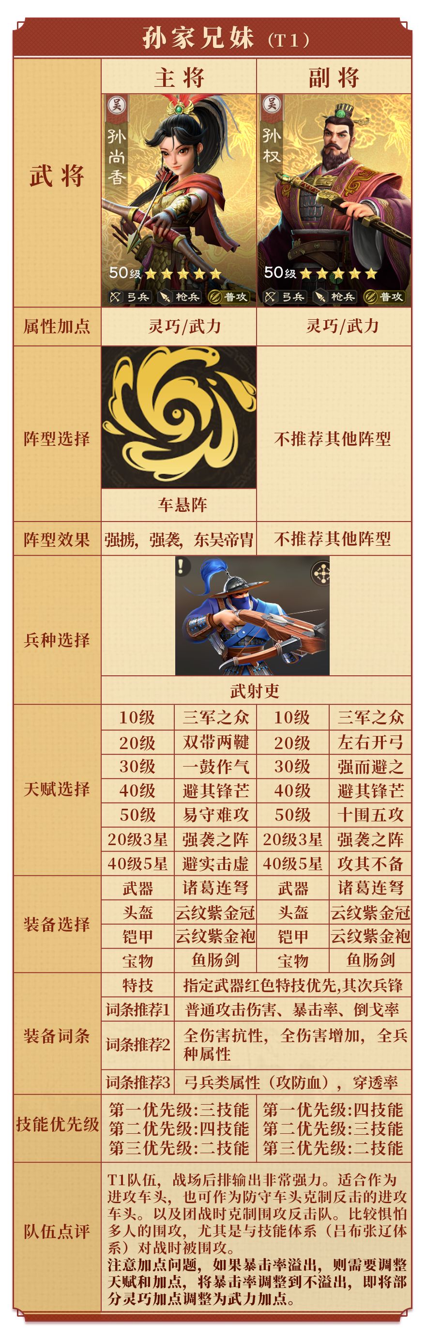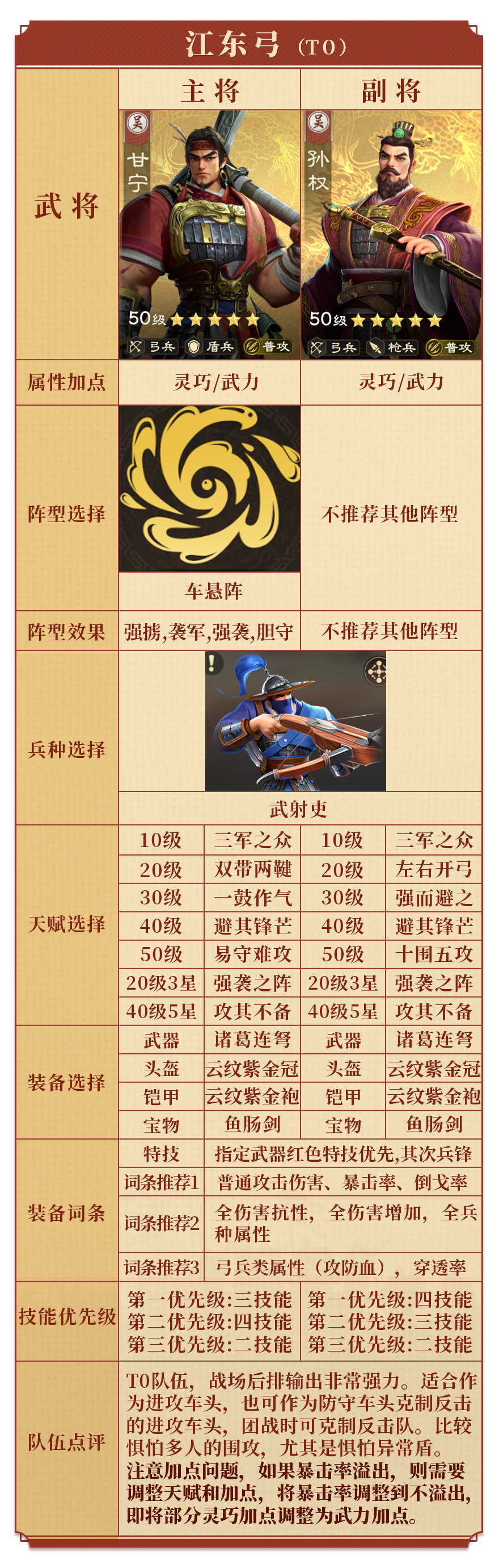 超级好用的普攻队,适合作为进攻车头。这里不使用甘宁的原因是,甘宁需要释放主动技能才能叠加连击状态,未破墙无法获得连击状态。因此在车头实用性上反而不如孙尚香。
