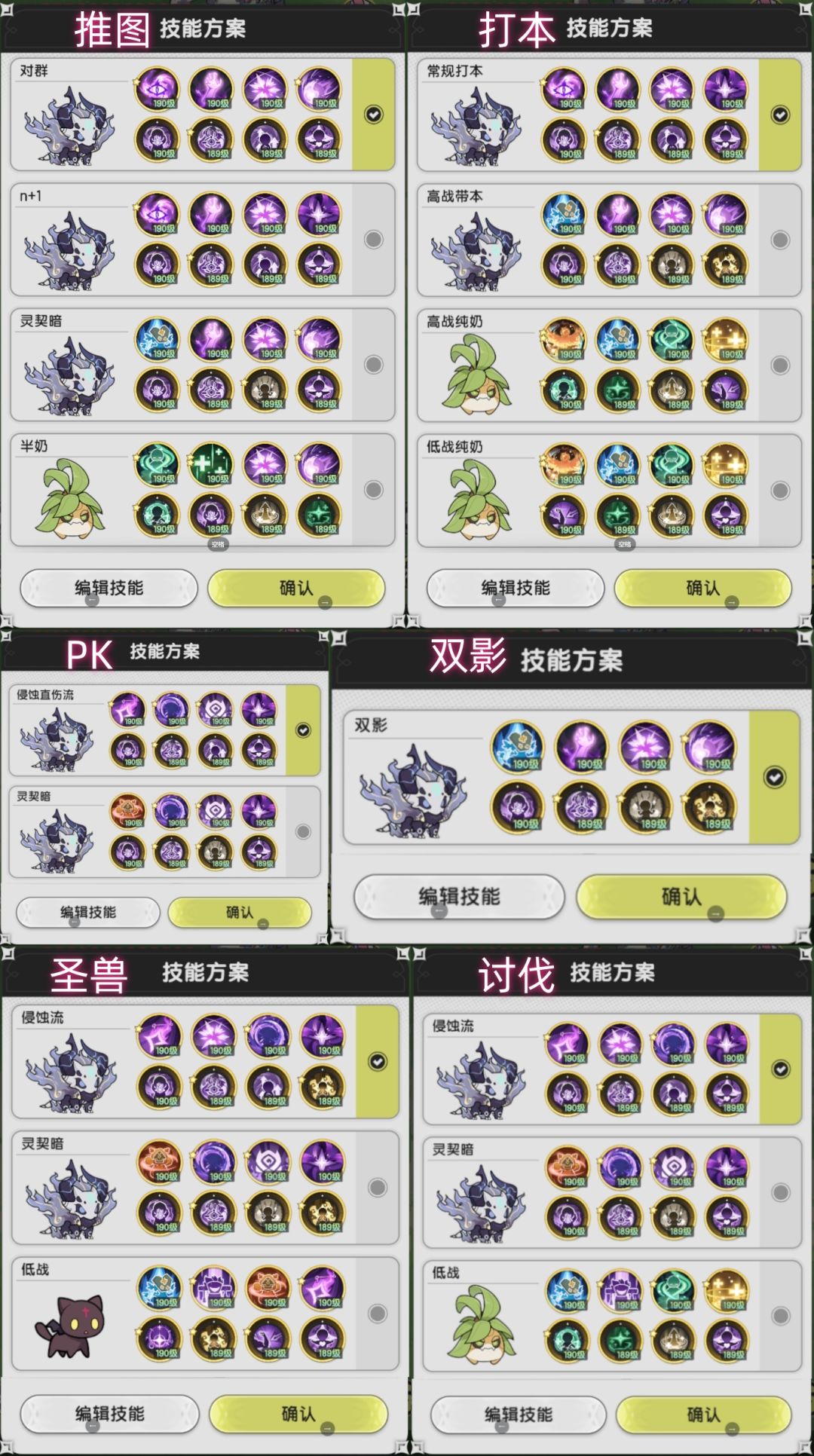 下面内容分详细说明各种场景的配置思路,最后有各技能分析。