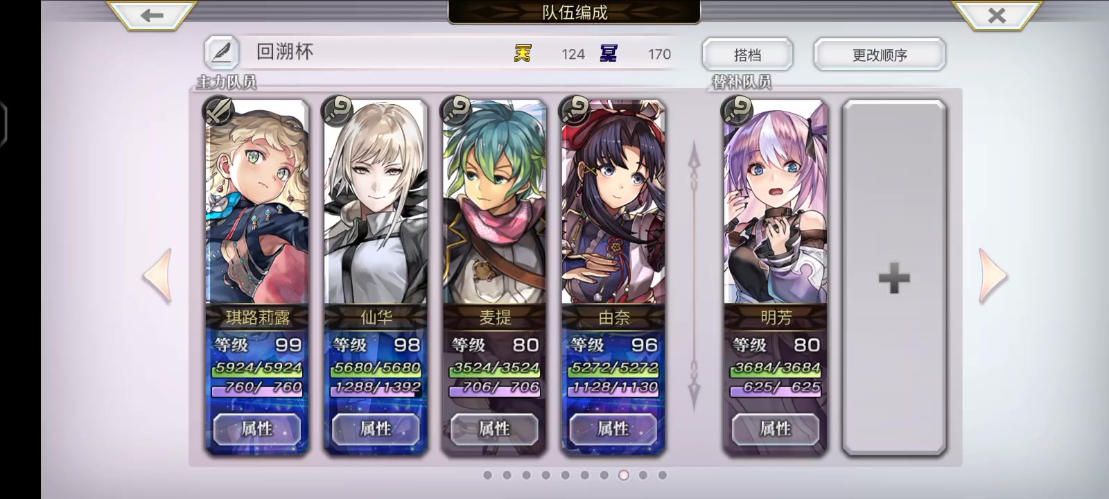 所有用到的角色天冥如下,胧是120天,as帕姆是131天(装了一个睡眠无效徽章对战斗无加成),其他只有小部分超了80天冥一丢丢,但个人感觉对结果影响不大,忘了调配置,交给裁判来判断吧