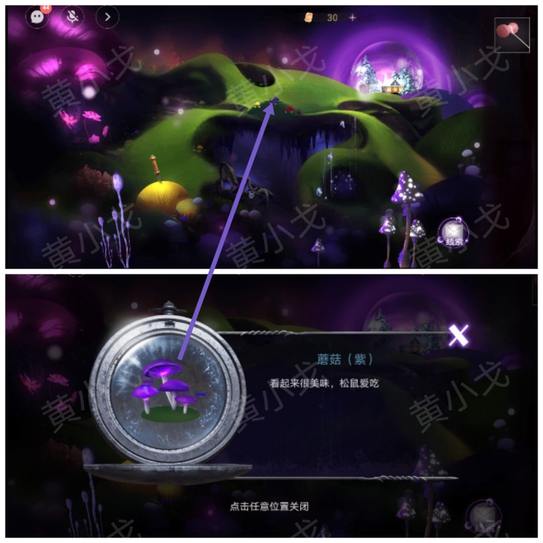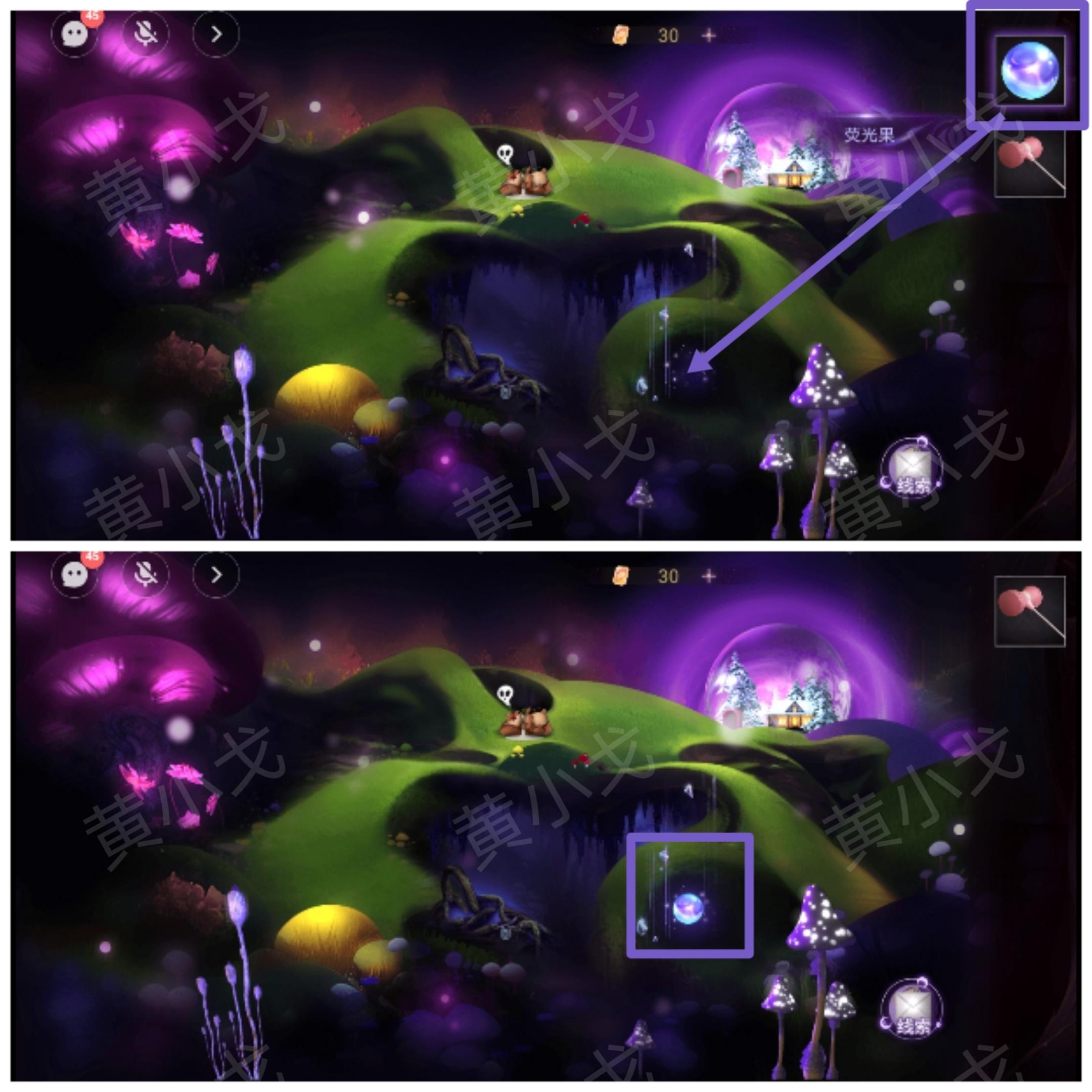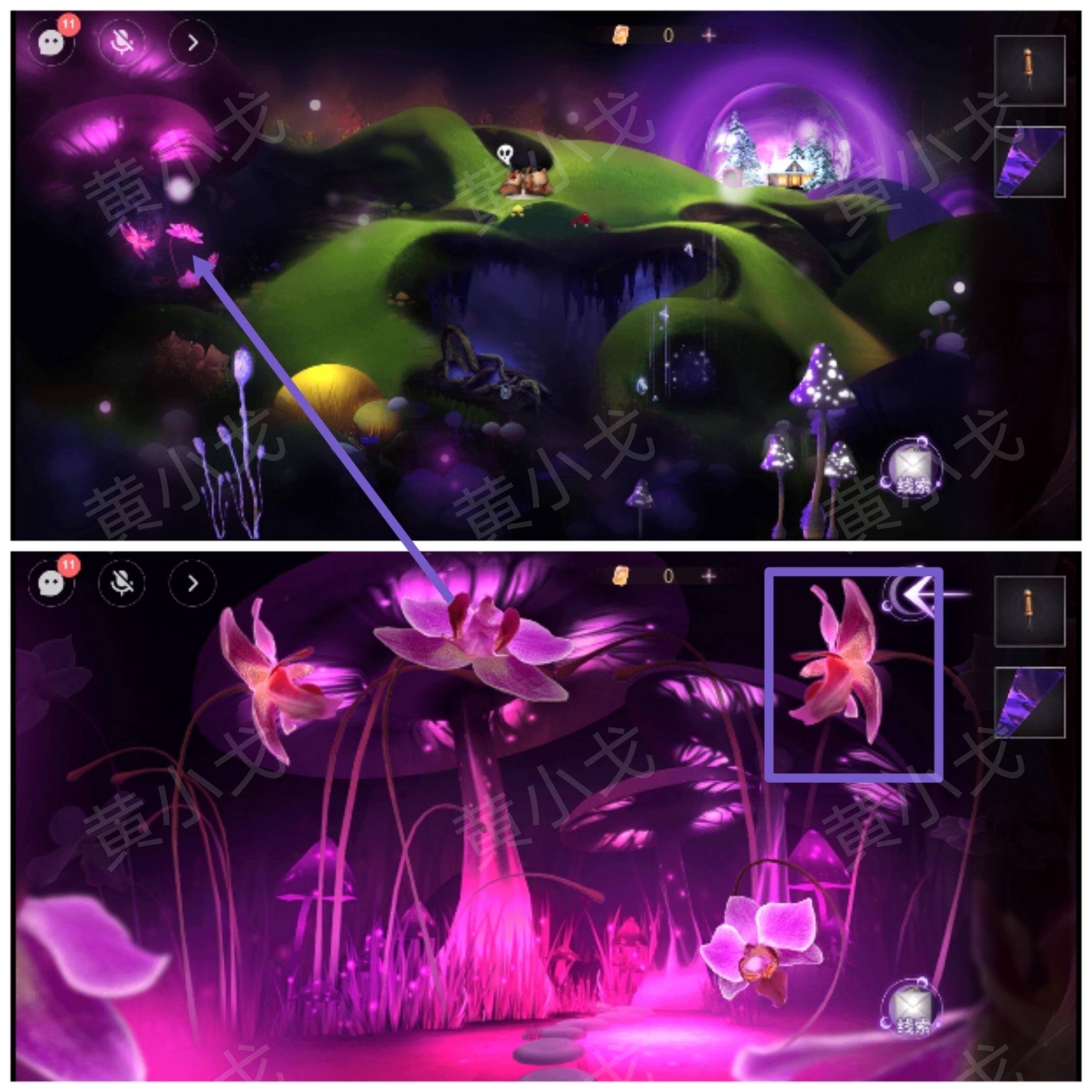 2.进入发亮的蘑菇林,帮队友弄下右侧花朵