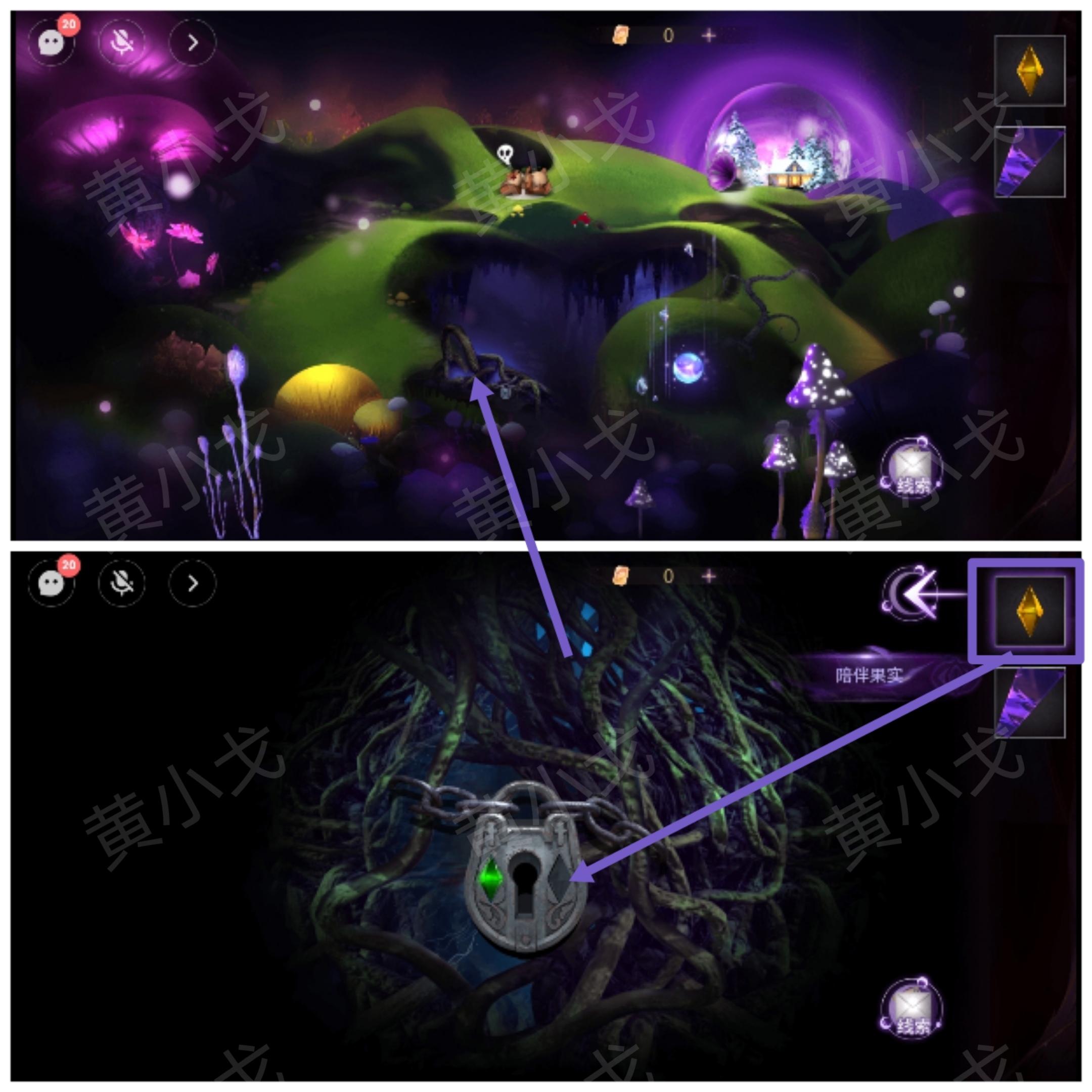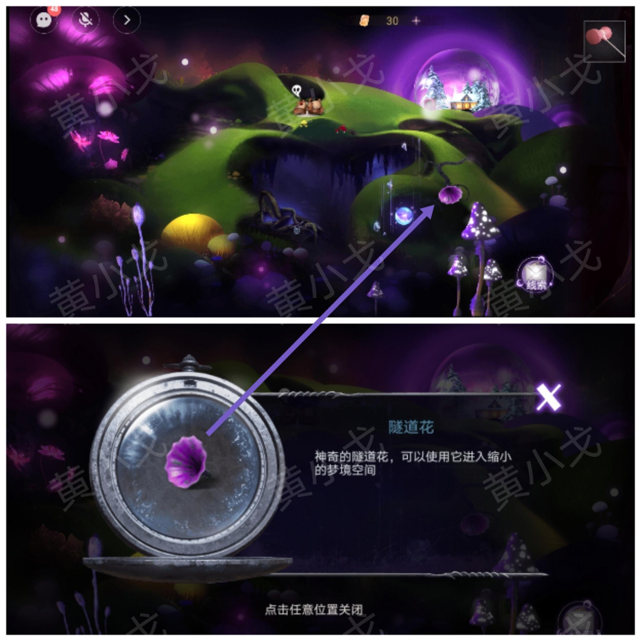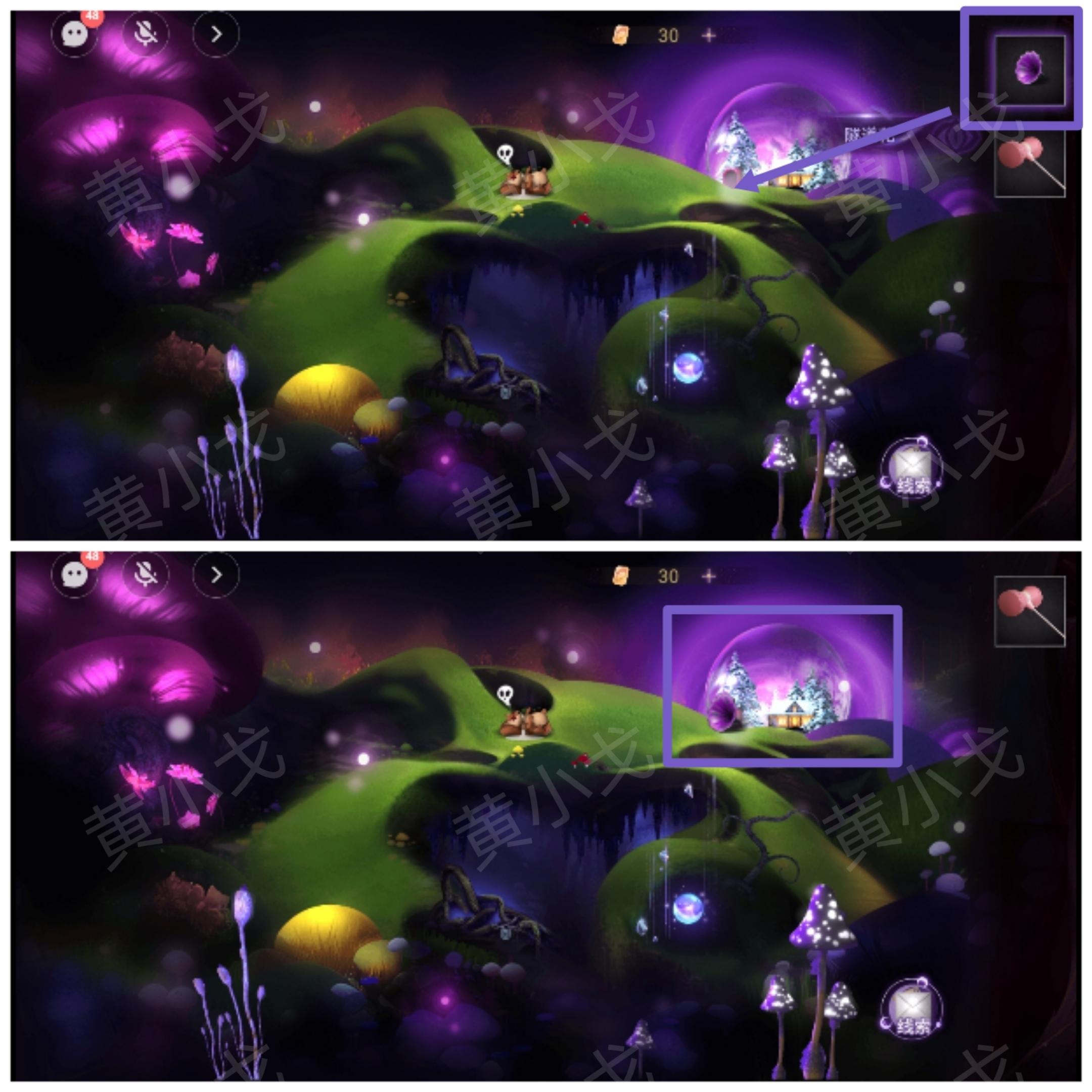 2.进入发亮的蘑菇林,帮队友弄下右侧花朵