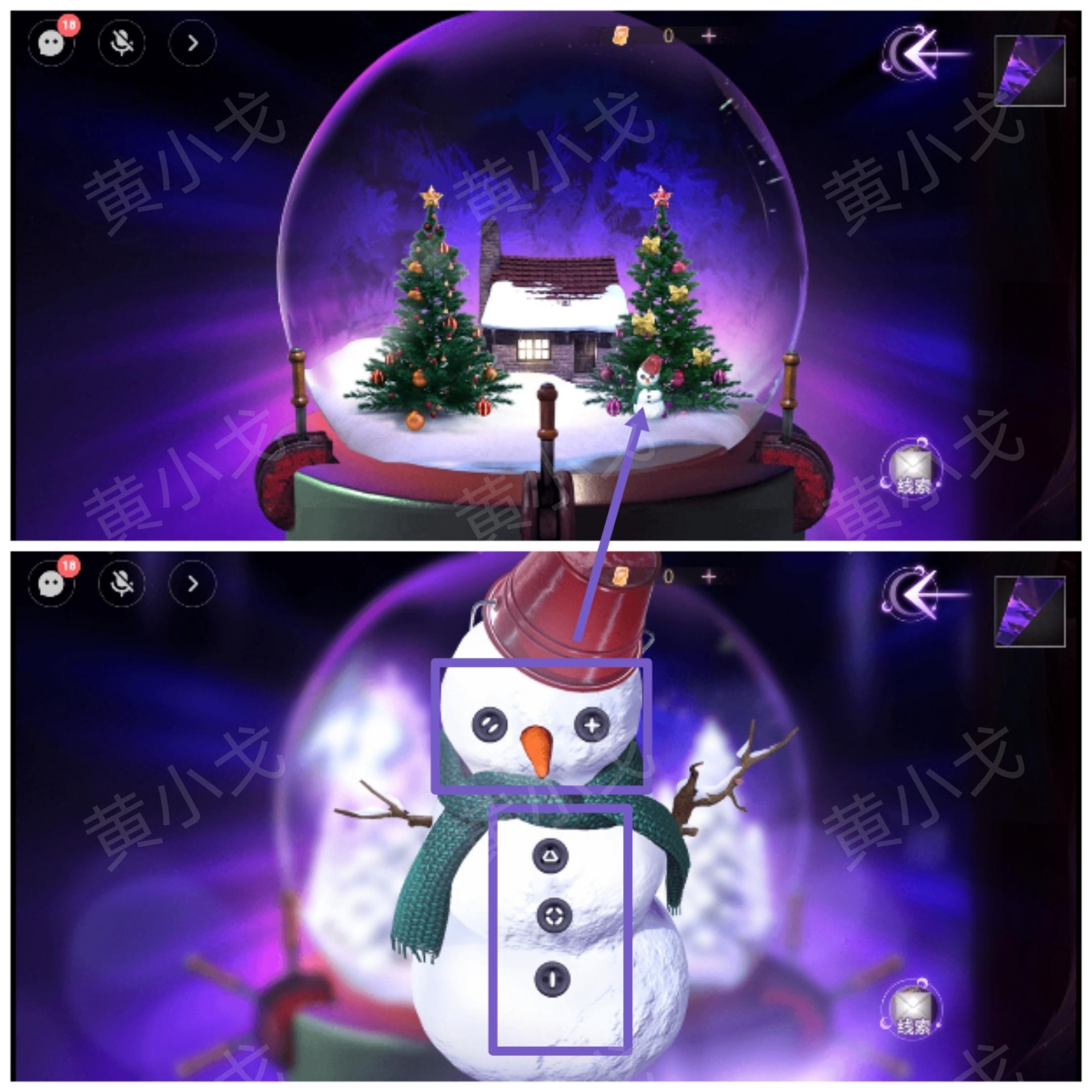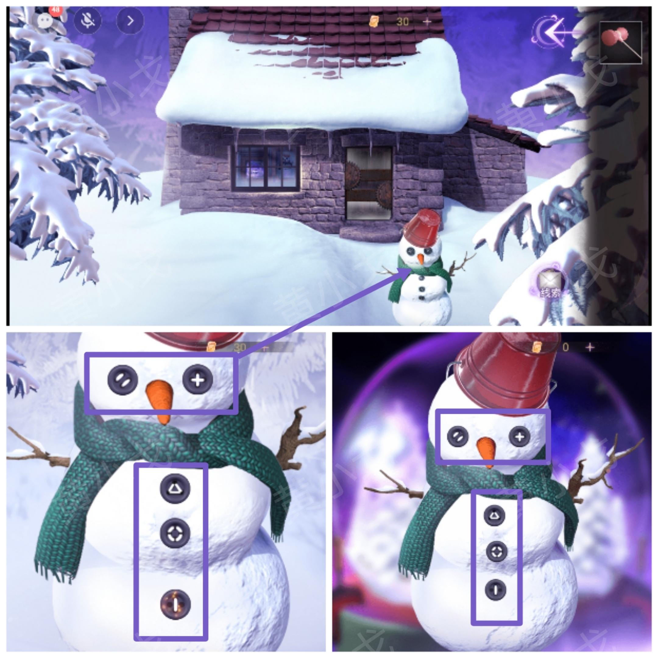 11.点击雪人,根据队友那边的线索,调整雪人身上的纽扣