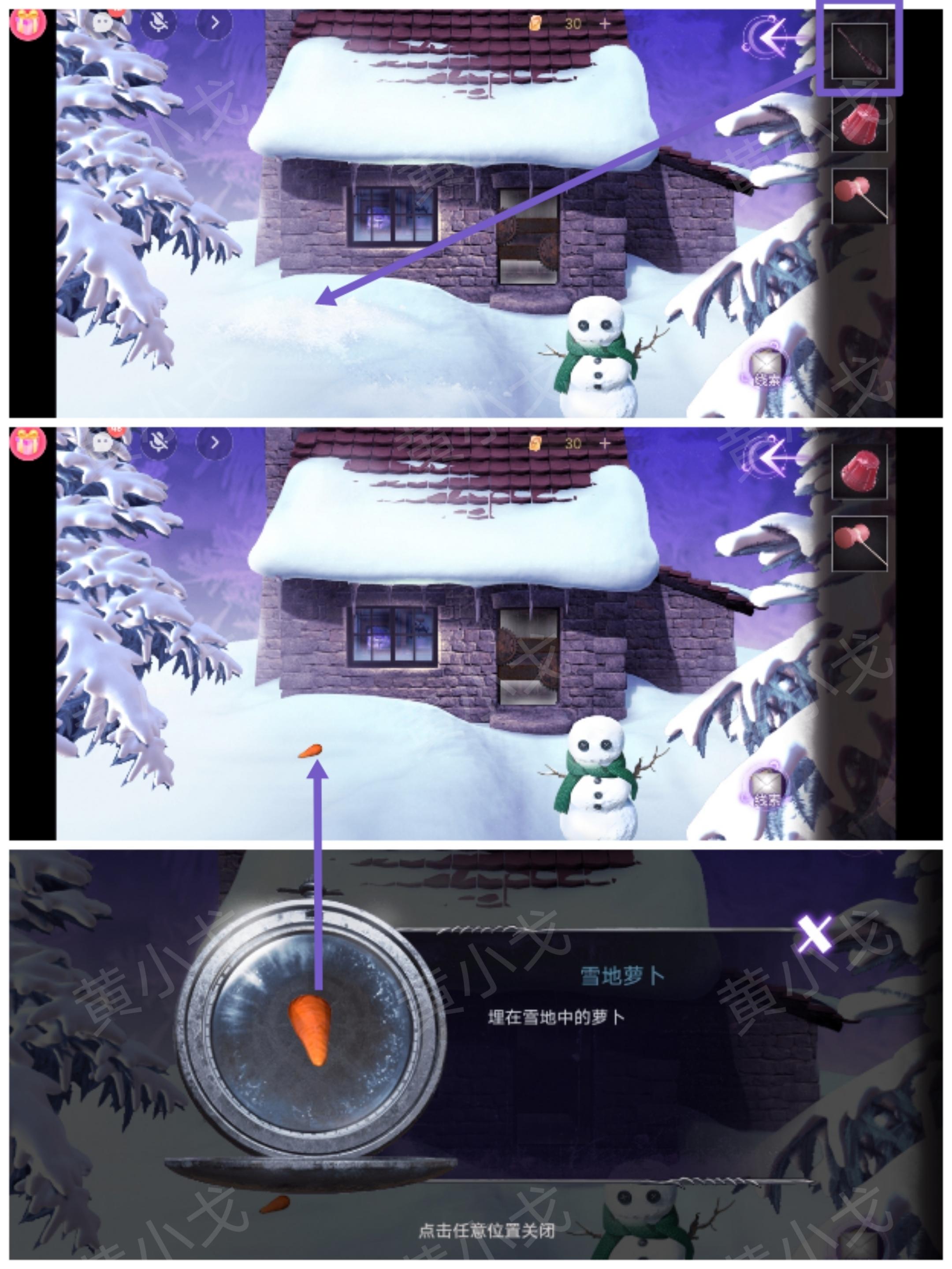 9.用【扫帚】扫掉积雪,获得【雪地萝卜】