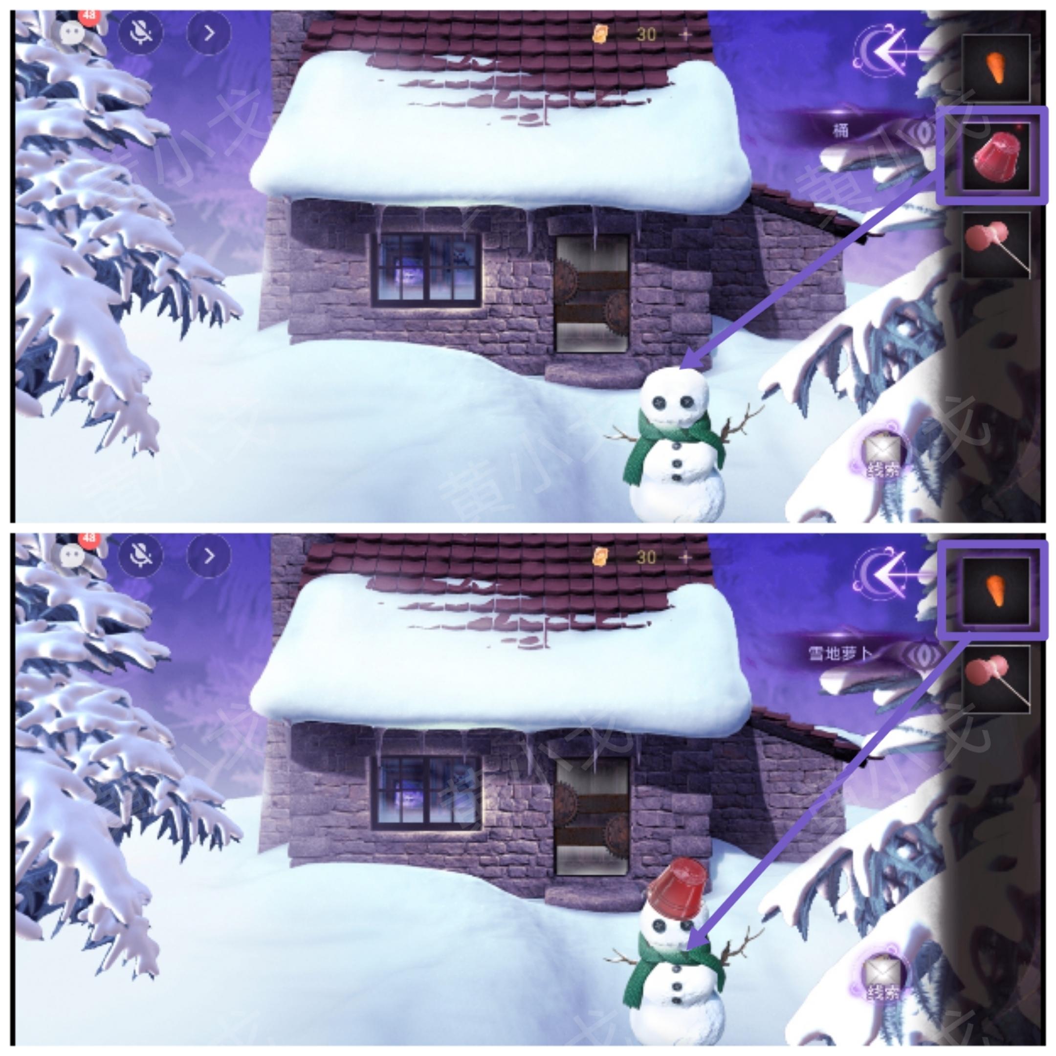 9.查看雪人,告诉队友雪人身上的纽扣形状