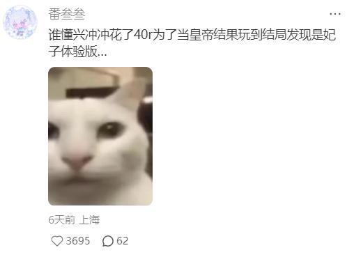 《盛世天下》的口碑崩塌,本质上是宣发策略与实际内容 mismatch 的结果。游戏通过强大的营销成功吸引了不同圈层的女性用户——历史爱好者、大女主题材粉丝、互动游戏玩家、影视剧观众等,却无法提供满足所有这些群体期待的内容体验。就是游戏宣传“当皇帝”,玩家想“当皇帝”,游戏内容是“做妃子”这样。