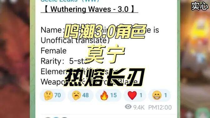 鸣潮3.0角色莫宁,热熔长刃3.0版本有两个少女角色,莫宁是拿热熔长刃的奶妈,有白毛公主切那样的发型,服饰和今汐还有些相似,既能奶又能提高热熔伤害,火队总算有专属奶妈了;琳奈是用衍射佩枪的JK少女,还戴着口罩,既帅又萌,普攻叠加“衍射电荷”能炸大范围伤害,是衍射队新主C的备选,3.1版本有暗系成男和女冰C,暗系成男是千咲的后续,能延长千咲的增伤buff;3.2版本是冰系增伤辅助,正好与31的女冰C搭配;3.4版本很有可能是联动,网传或许是二次元IP,但估计就是老角色的新衣裳,不是新五星;3.5版本是秧秧SP和火系成男,火男还得绑定3.6的火C心月狐;3.6的心月狐是国风美女,颜值控可以提前攒攒星声。