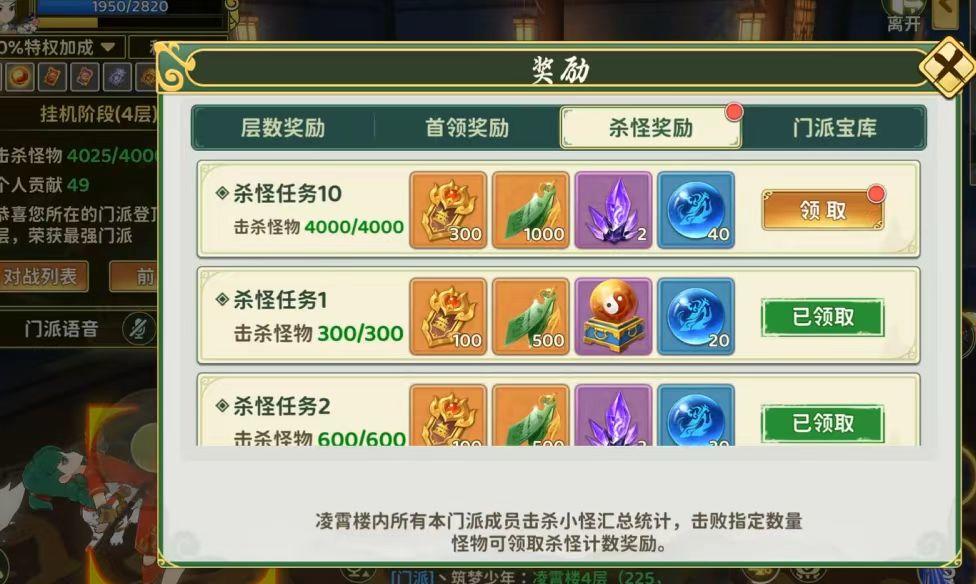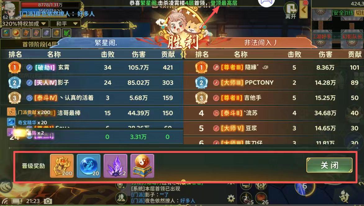 最后也是成功登顶了,荣获最强门派,而且所有奖励都拿到了。