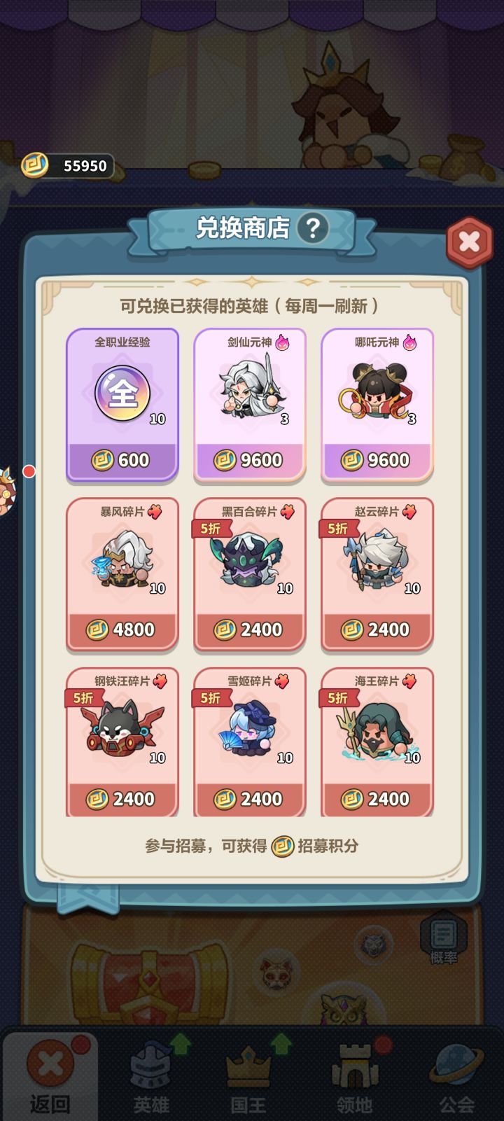 每周商店里的“半价兑换”,咱只换暴风的碎片,继续养暴风就行。那些金色卡牌、不是半价的红卡碎片,千万别换!金色卡用不了40天就淘汰了,其他红卡(比如海王)根本不值得花资源,升到10-15级凑个“爆伤加成”就够了。