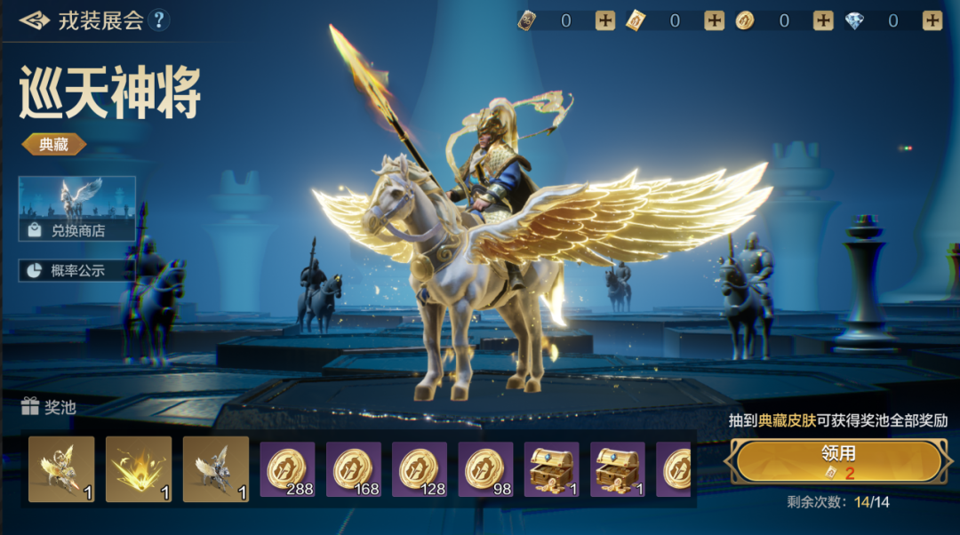 1、 活动中消耗【戎装领用券】道具进行抽取,有机会直接获得;