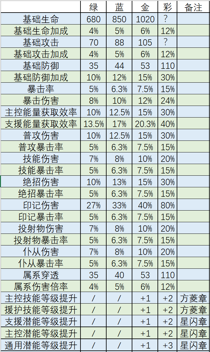 仅供参考,可能存在部分因游戏说明不准确/不正确导致的数据出入