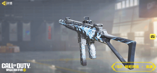 ISO-邪祀洪流 · 冻魂白蓝相间的枪身如同冰霜凝固,寒气仿佛透过表皮直刺骨髓,枪身上的邪眼沉寂无神,如被冰封的鬼魂令人生畏。
