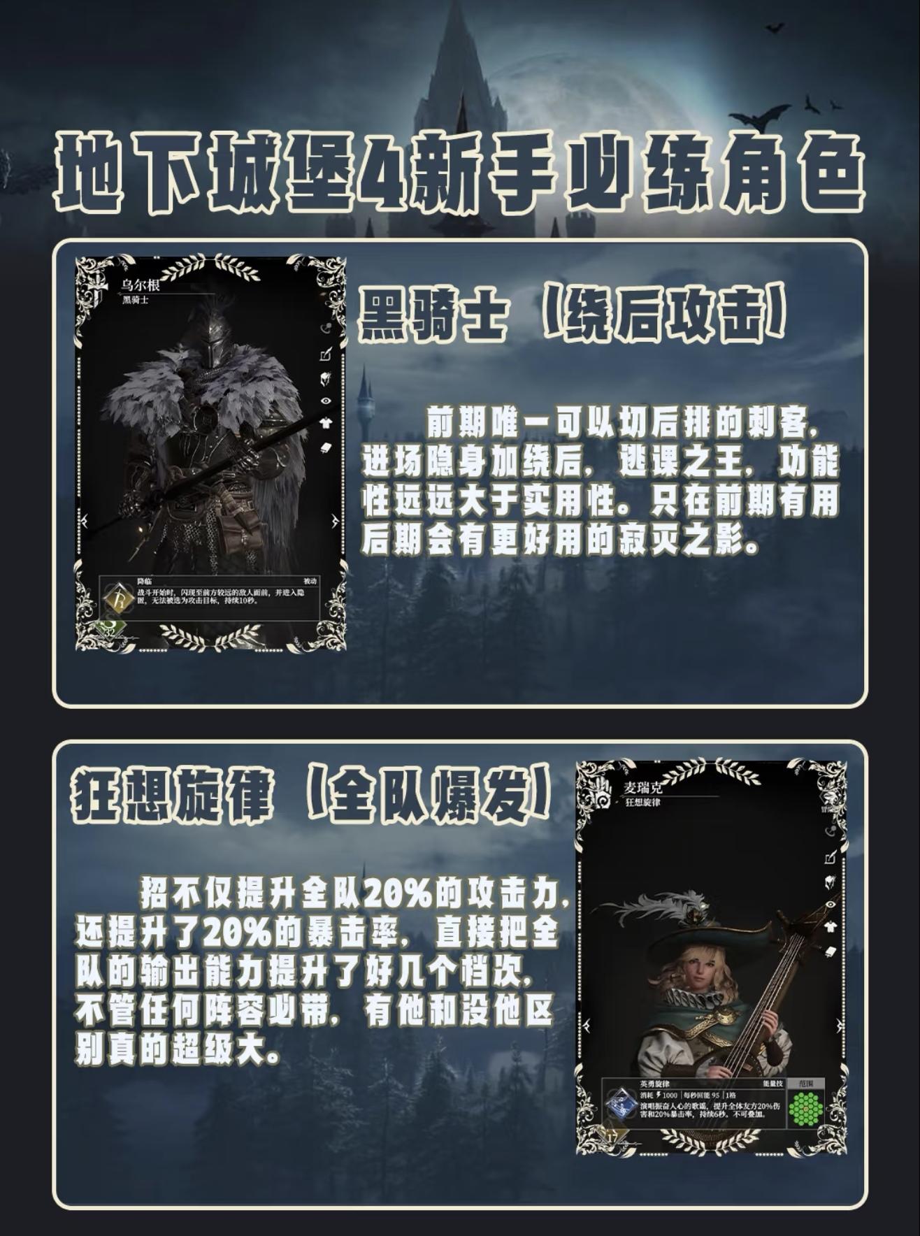 黑骑士:前期唯一稳定切后排的刺客,进场隐身+绕后机制,是应对阴间站位关卡的“逃课神器”,但后期强度会下滑。