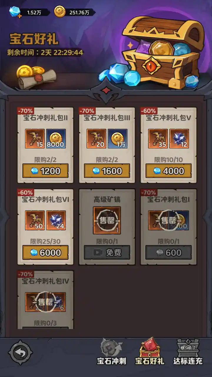 冲刺活动,尽量以“轮“为单位的做,尤其宝石和藏品,不做满一轮的话非常非常吃亏。