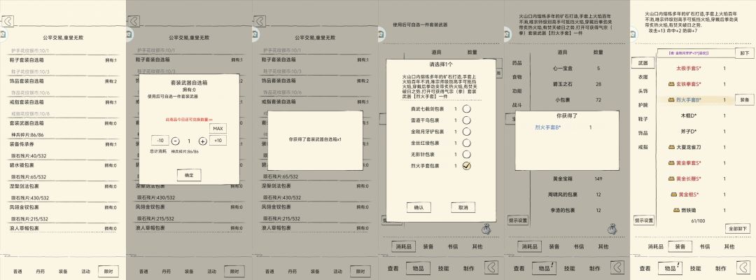 注意!前期很长一段时间内,你是做不出套装武器的,所以并不是你玩什么兵器类型你就无脑攒什么套装(不是说不能攒,你可以攒一套放在仓库里以后用),而是看各个套装的基础数值而决定,以实现前期强度的最大化。