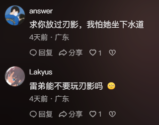 粉丝对于雷剑的邪乎还是十分了解的,自从主播发布了一段夸刃影的视频,可把粉丝们吓坏了,纷纷跪求雷剑千万别玩