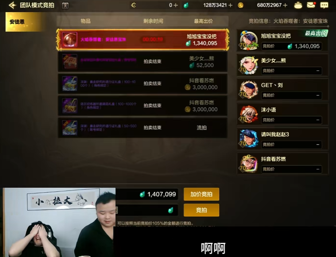 结果却是泰拉换了,没抢过,认大哥也不好使,他们区安徒恩宝珠价格大概在170万,134万拍下还是有得赚的