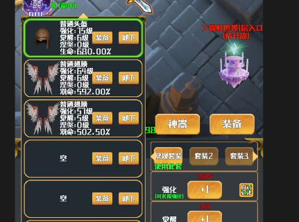 情况2:跳关加成低,我们选择2鞋2头2翅1甲,多余同上,不同之处是打到后面要优先替换掉鞋子