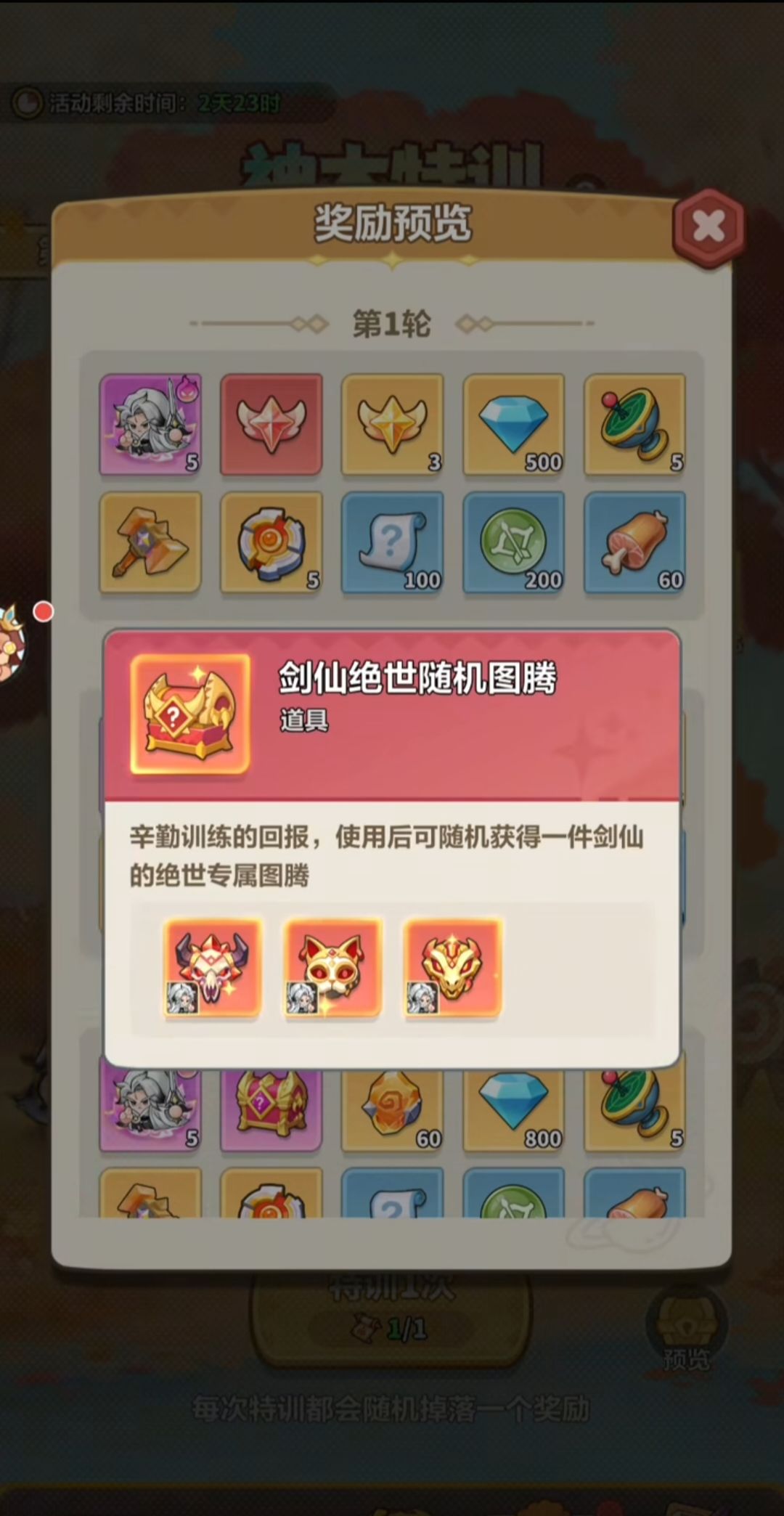 剑仙试炼与以往的英雄试炼都不相同,但是和开服的时候小熊夺宝那个活动类似,依次消耗道具来获得一个奖励,每一轮都需要全部拿完之后才会进入下一轮(例如提前出了大奖也不会进入下一轮,需全部拿完本轮奖励)。