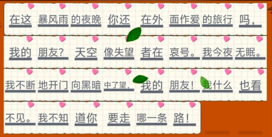 在这暴风雨的夜晚你还在外面作爱的旅行吗,我的朋友?天空像失望者在哀号。我今夜无眠。我不断地开门向黑暗中了望,我的朋友!我什么也看不见。我不知道你要走哪一条路!