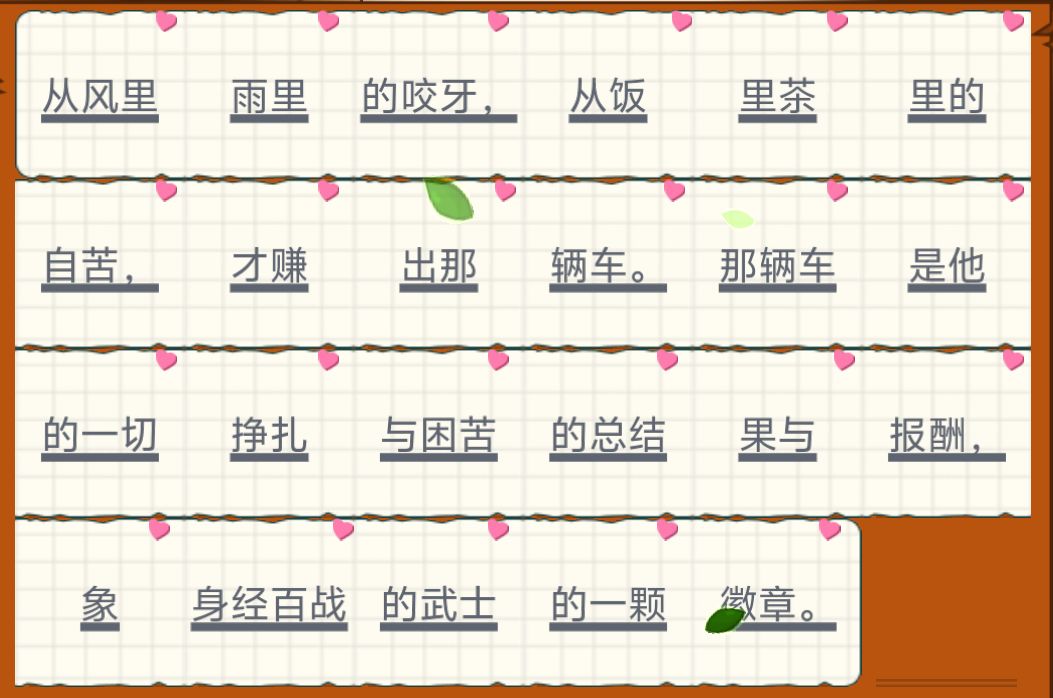 从风里雨里的咬牙,从饭里茶里的自苦,才赚出那辆车。那辆车是他的一切挣扎与困苦的总结果与报酬,象身经百战的武士的一颗徽章。