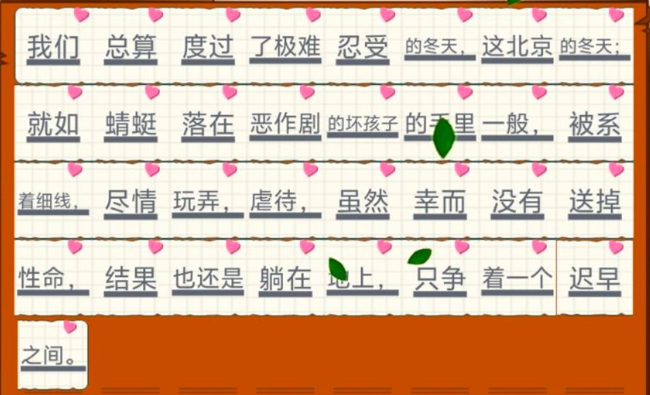 我们总算度过了极难忍受的冬天,这北京的冬天;就如蜻蜓落在恶作剧的坏孩子的手里一般,被系着细线,尽情玩弄,虐待,虽然幸而没有送掉性命,结果也还是躺在地上,只争着一个迟早之间。