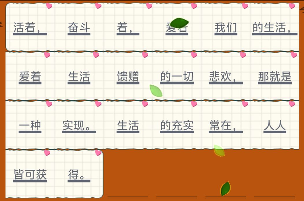 活着,奋斗着,爱着我们的生活,爱着生活馈赠的一切悲欢,那就是一种实现。生活的充实常在,人人皆可获得。