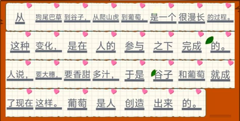 从狗尾巴草到谷子,从爬山虎到葡萄,是一个很漫长的过程。这种变化,是在人的参与之下完成的。人说,要大穗,要香甜多汁,于是谷子和葡萄就成了现在这样。葡萄是人创造出来的。