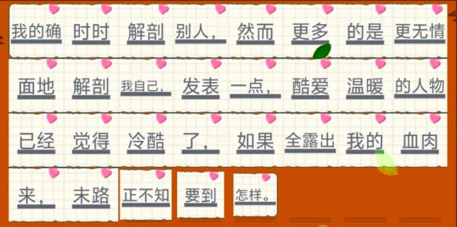 我的确时时解剖别人,然而更多的是更无情面地解剖我自己,发表一点,酷爱温暖的人物已经觉得冷酷了,如果全露出我的血肉来,末路正不知要到怎样。