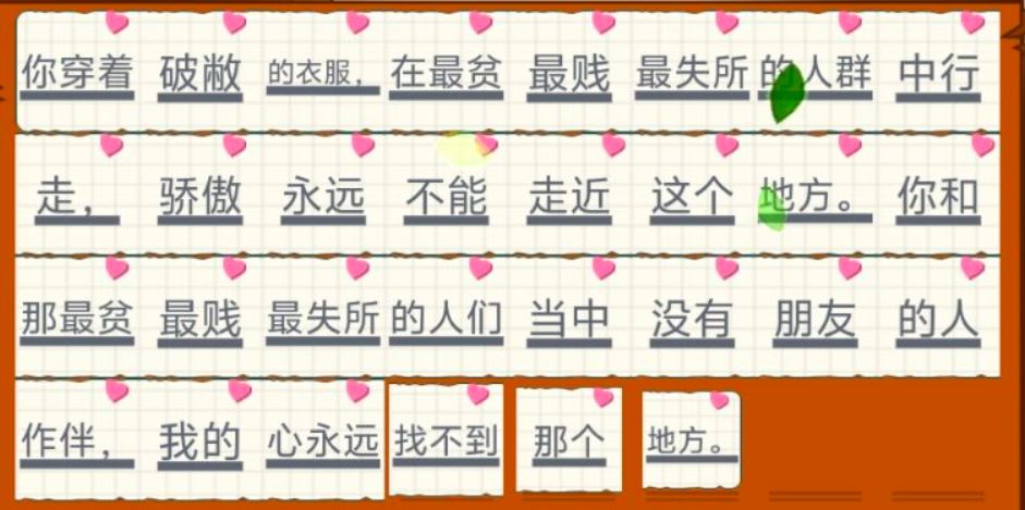 你穿着破敝的衣服,在最贫最贱最失所的人群中行走,骄傲永远不能走近这个地方。你和那最贫最贱最失所的人们当中没有朋友的人作伴,我的心永远找不到那个地方。