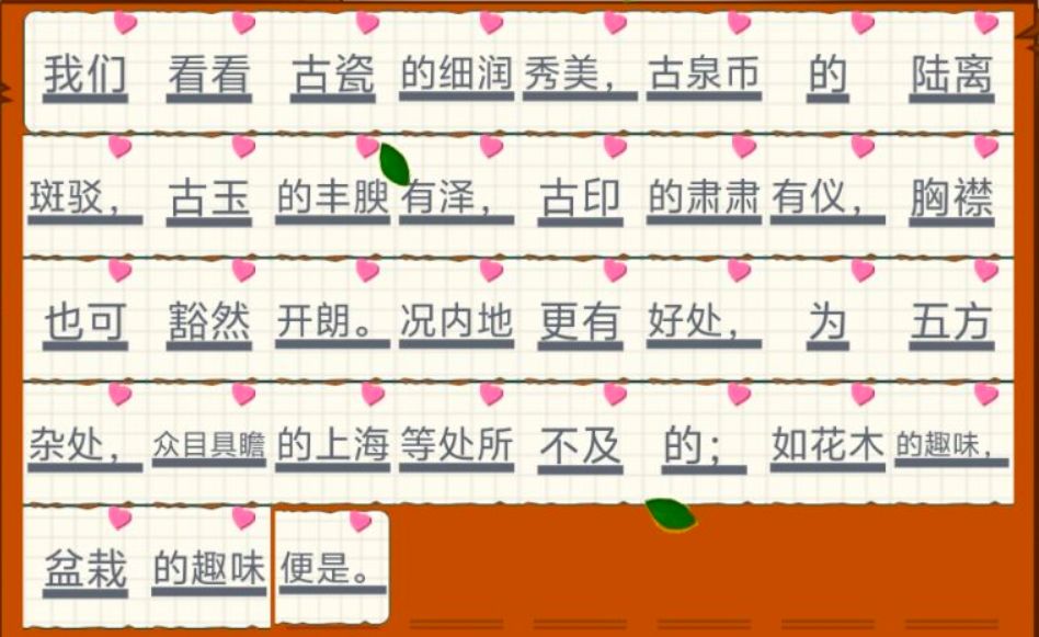我们看看古瓷的细润秀美,古泉币的陆离斑驳,古玉的丰腴有泽,古印的肃肃有仪,胸襟也可豁然开朗。况内地更有好处,为五方杂处,众目具瞻的上海等处所不及的;如花木的趣味,盆栽的趣味便是。