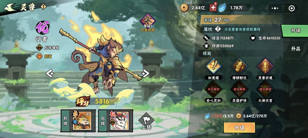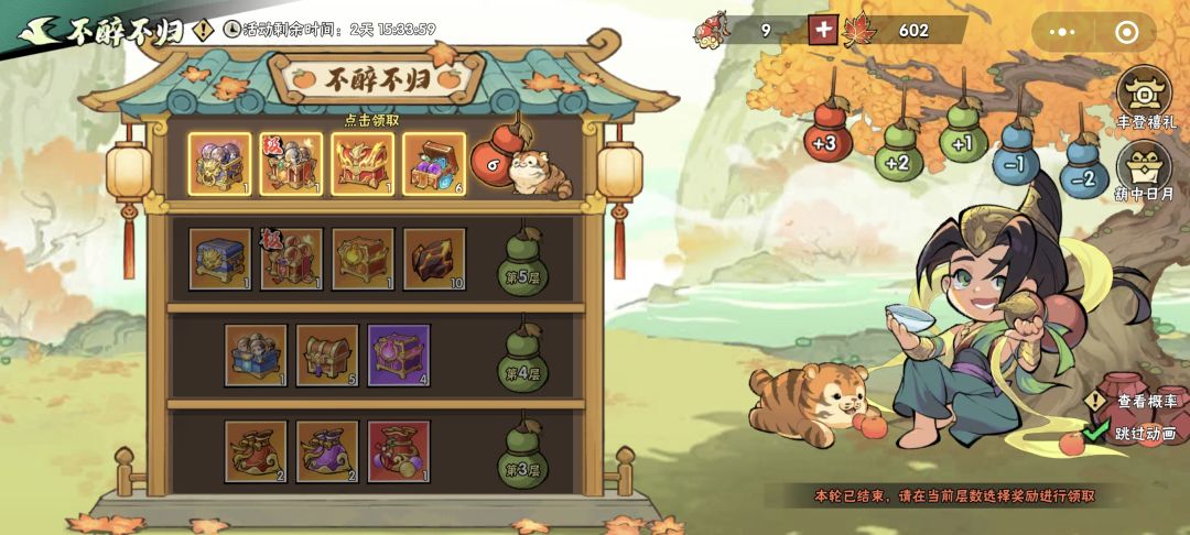 这次国庆活动前两天刚刚弄到了一个貂蝉,感觉跟中大奖似的,本以为国庆活动就这样结束了,已经很满足了,万万没想到啊,就在刚才同一个号上,在三层的时候我换了那个丹药回到一层时,点一下升到2层,然后又花两个葫芦随便点了一下,嗖一下升到5层,又是一个直升3层,我一想我还没用玉买葫芦呢,经过我的计算大保底需要105个葫芦,用玉能买80个,还有两天结束,再加上活动给的葫芦可以到6层,直接1.2万玉梭哈,点了14次左右升到6层,果断换了个达摩。然而运气还没结束,这时还剩9个葫芦,又是一个直升3级,从2升到5,换了个灵兽随机箱子开了个行者。这次国庆活动非常可以了,同一个号上白嫖了两个武魂1个行者,一分没氪葫芦榜弄了400多分,目前第4。我在一年前就发帖子说过,武侠大明星是全网最良心的手游,没有之一,不肝不氪,这次活动没能白嫖到的朋友也别泄气,这种爬楼的活动一年有好几次,什么端午啊,七夕啊,中秋啊,元旦啊,除夕啊,总有你欧的时候,心中有信仰,坚信光总会照耀到你身上的……