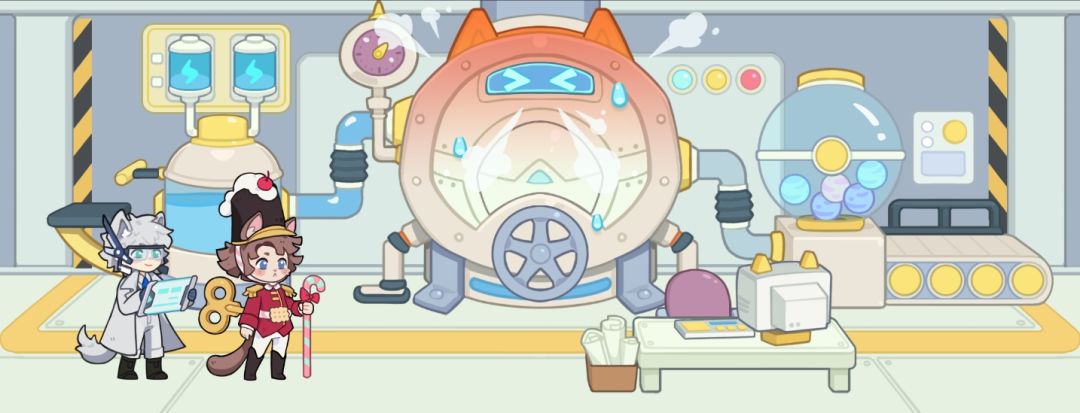 心情好的动力炉:周围出现粉红色的光效以及蓝色爱心,炉身和耳朵左右晃动。