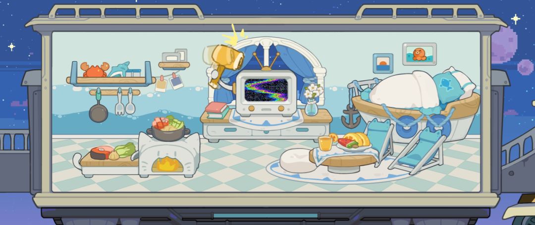 二号车厢晚上会根据实际情况注满水,会有小鱼游动,和气泡漂浮