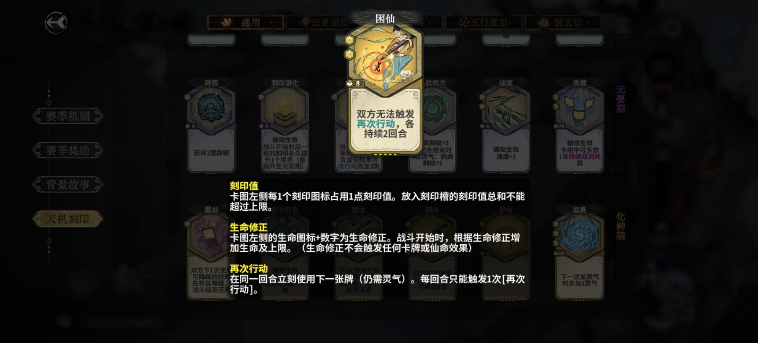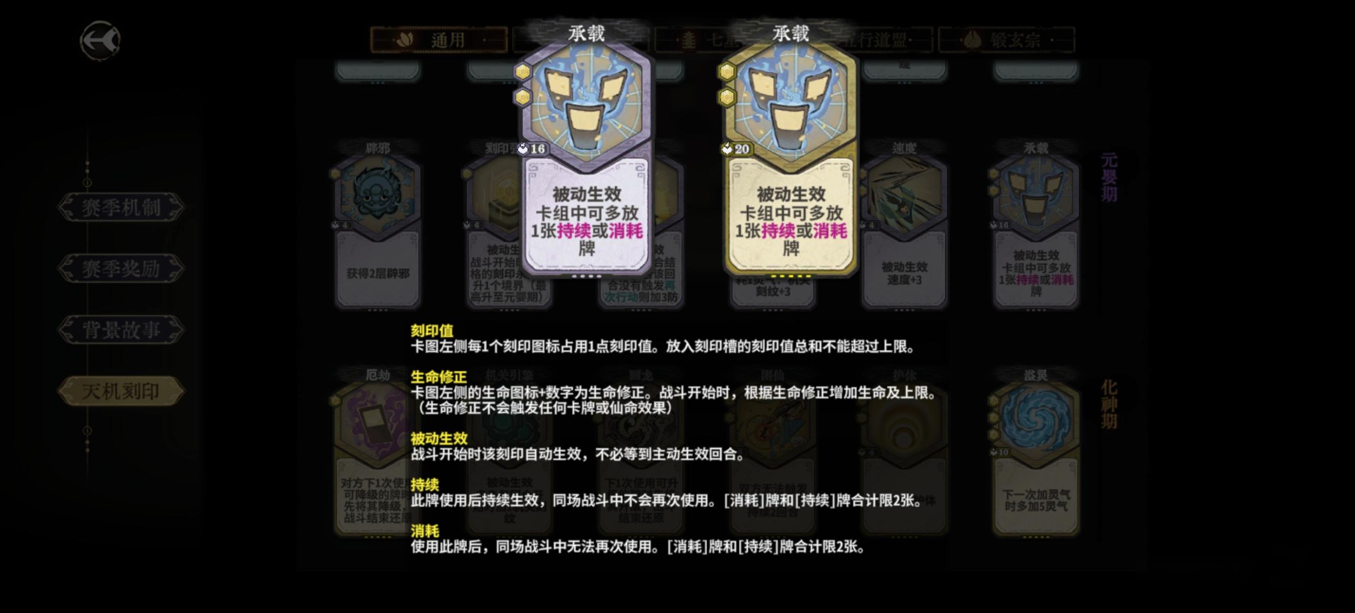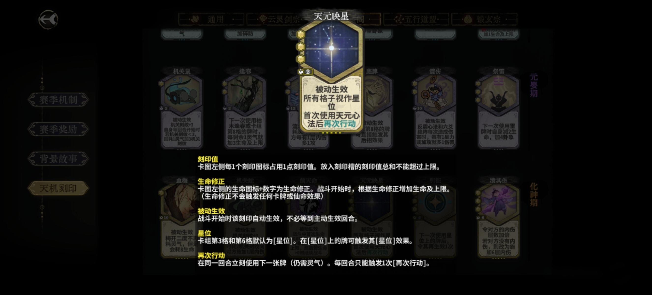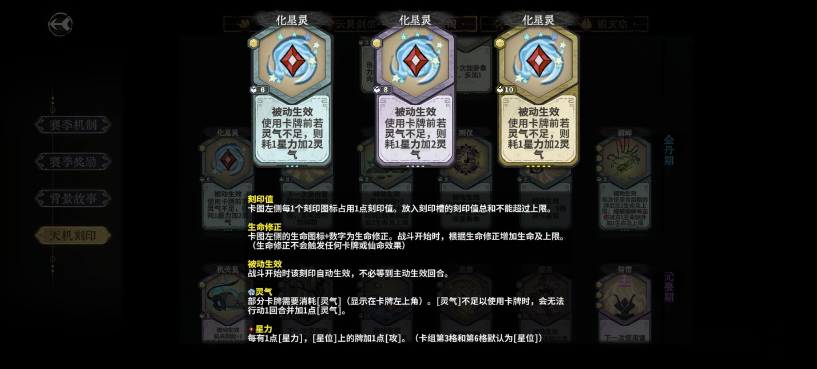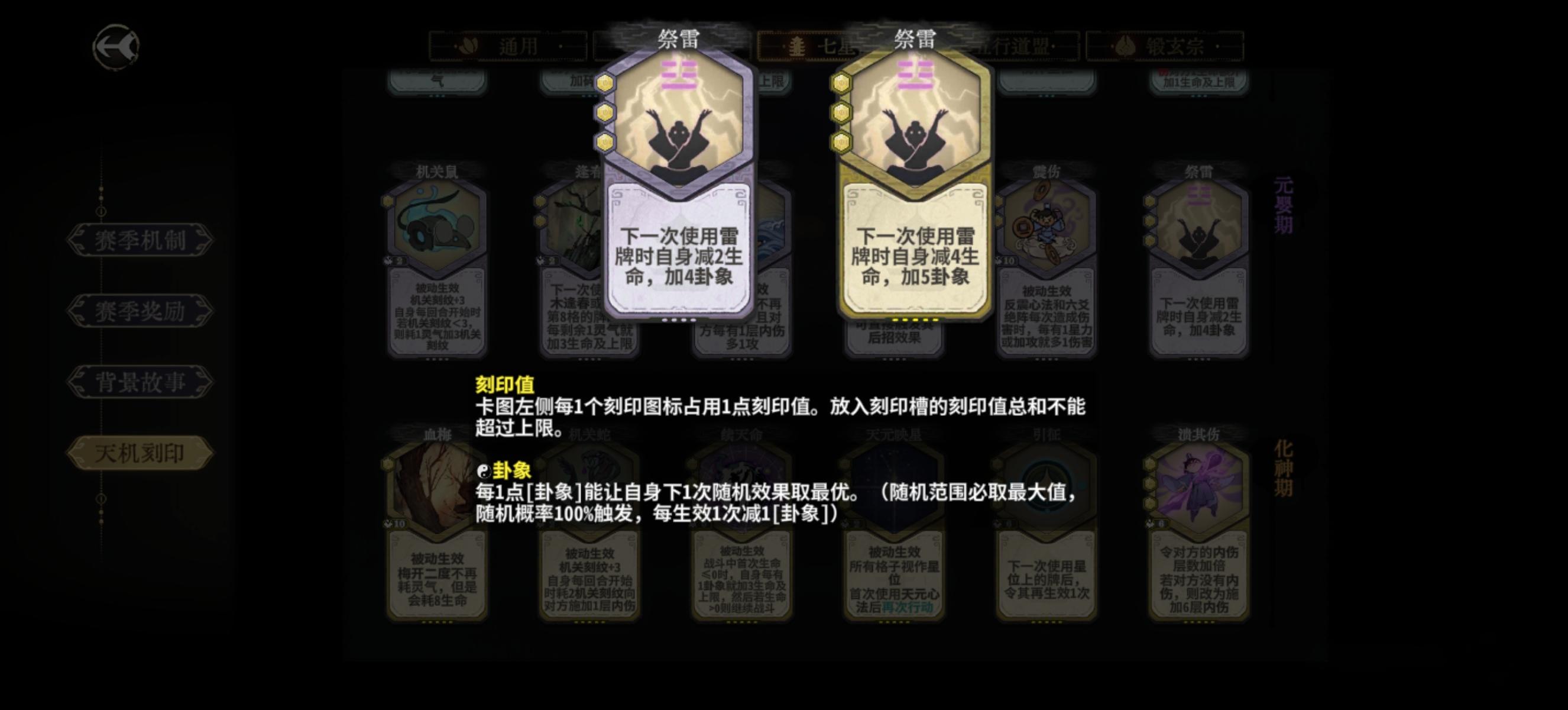 化神缺牌时可以继续用上面的一些牌去过渡,比如缺少耗卦牌时用星轨去吃卦盘收益。以及多用再动卡去填充。