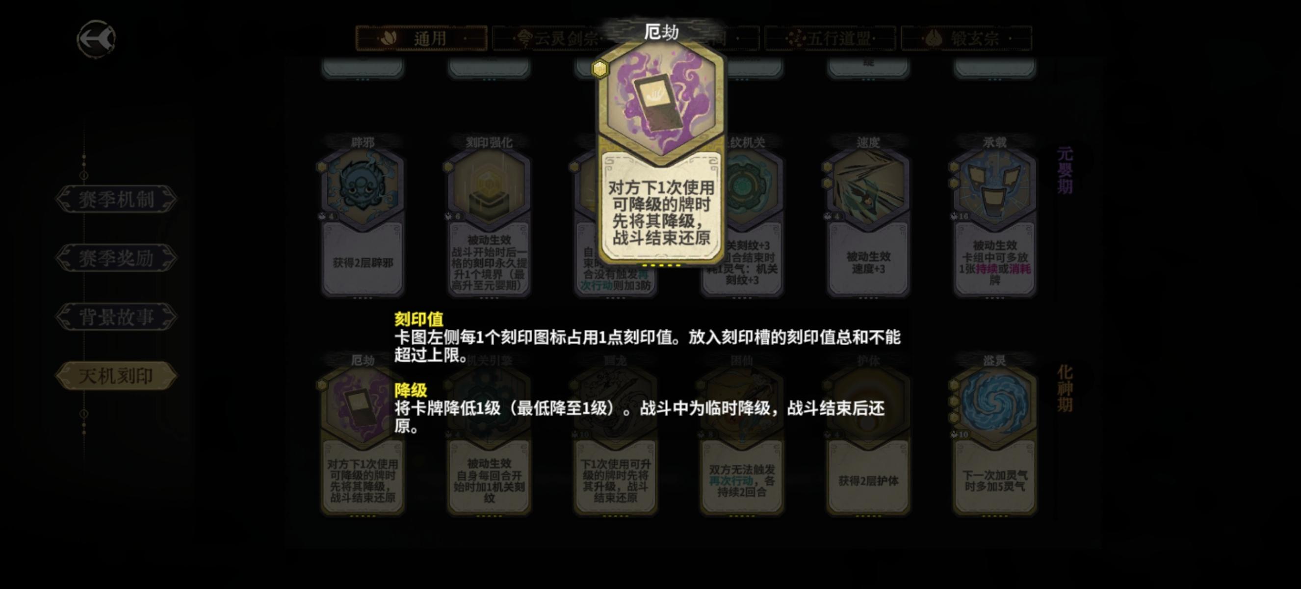 降级对方关键牌,比如飞鸿,御空,乾卦等。打雁子后期可以一动厄劫二动断,不管是降飞鸿断轮子还是断飞鸿都很强。
