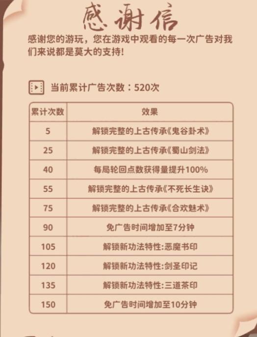 “恶魔书印”“三道茶印”“剑圣印记”这个三个功法词条都是要看满足够的广告数解锁的(好吧,那确实该看广告了)