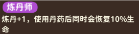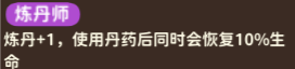 炼丹师:炼丹+1,使用丹药后恢复10%的生命值