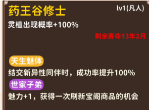 炼丹:影响炼丹时产出的丹药品质(给小笨蛋的一点提示,在抽到灵植卡时会自动炼丹,无需自己操作)