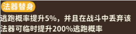 法器替身:增加5%逃跑概率,在战斗中丢弃拥有该词条的法器后逃跑概率提升200%