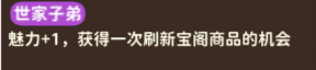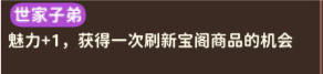 世家子弟:魅力+1,获得一次刷新商会的机会